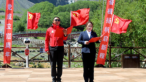 為慶祝中國共產(chǎn)黨成立103周年,6月27日,長白山北景區(qū)黨支部、北景區(qū)運(yùn)營黨支部、北景區(qū)消防救援站黨支部以及民營企業(yè)天池黨支部在北景區(qū)溫泉廣場,共同開展了“同心向黨慶七一 奮楫揚(yáng)帆啟新程”主題黨日活動。黨員、積極分子63人參加了此次活動。